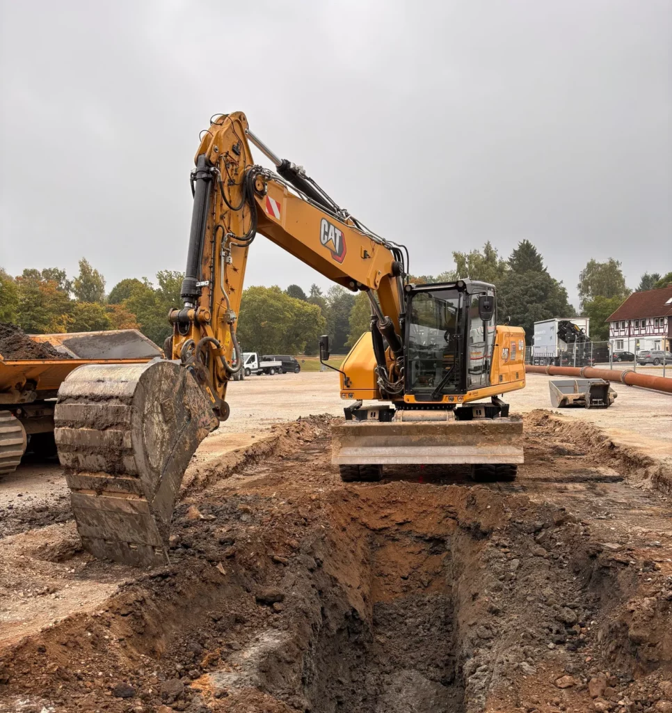 Wir bieten Ihnen die beste Baggertechnik und umfassende Services für Kanalbauarbeiten in Duderstadt. Unsere Einsatzmöglichkeiten decken unter anderem RW/SW-Kontrollschächte, Grundstücks- und Hofentwässerung, Regenwasserspeicher/Zisternen sowie Drainageleitungen ab. Als erfahrenes Unternehmen im Kanal- und Straßenbau stehen wir Ihnen mit umfassender Beratung zur Seite und bringen unsere Expertise als Subunternehmer in verschiedenen Straßenbauprojekten ein. Zusätzlich bieten wir Baumaschinentransporte mit einem Lkw-Tieflader (30 Tonnen) an und helfen Ihnen so tatkräftig bei der Umsetzung Ihrer Bauvorhaben.